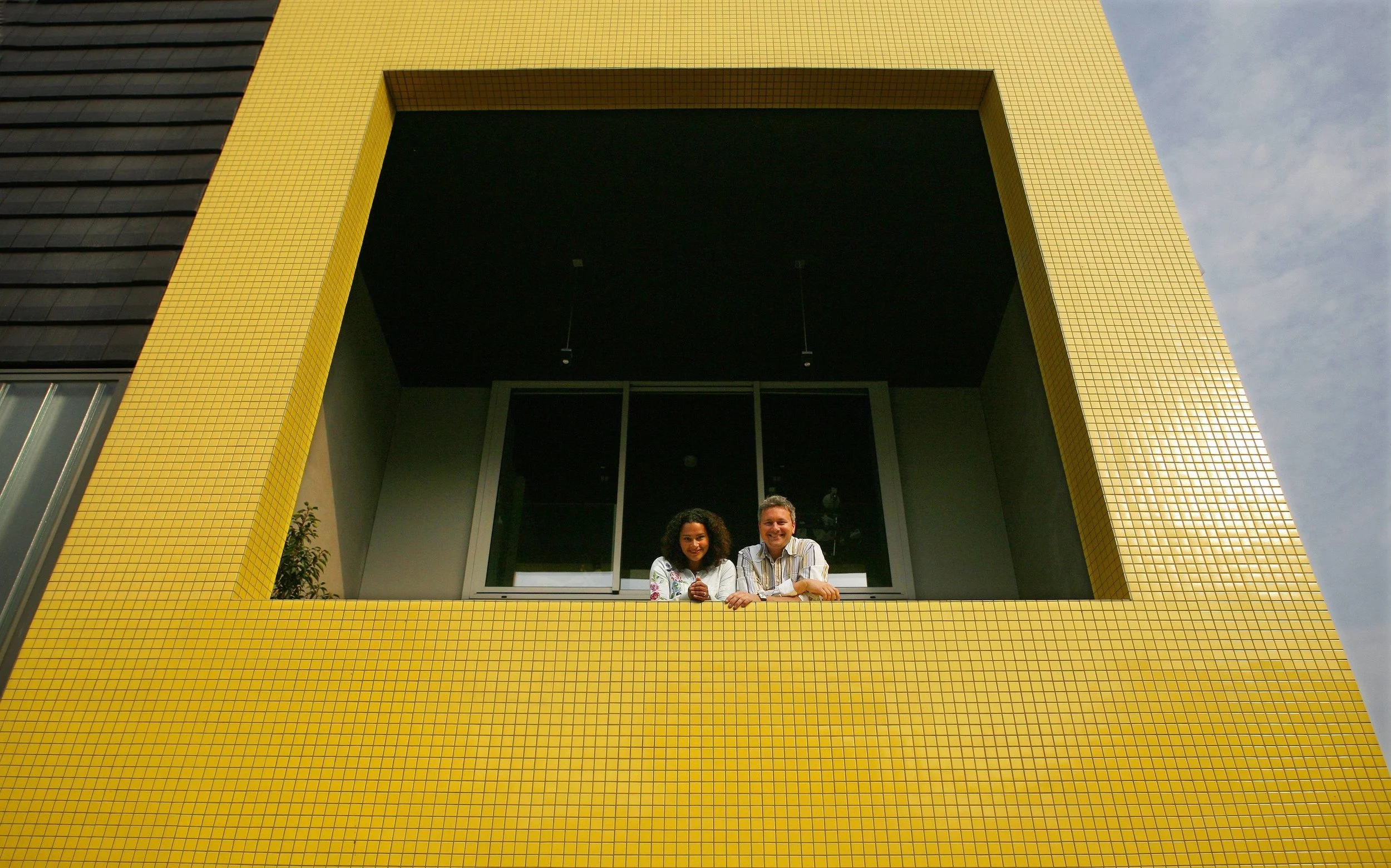 Oriented towards the street, the large south-facing outdoor space is designed to carefully balance privacy and openness. Like a patio around which the house is organised, the double height space provides light and views for the adjacent rooms, and possibilities to profit from the sun both in and outside. The adjoining kitchen forms the heart of the house, in between the loggia, used as outdoor dining room, and a spacious indoor dining area that overlooks the garden. The lounge above the kitchen is an intimate space, with a great view to both the garden and street. Clad in a bright yellow tile, the S-house clearly stands out from its surroundings.