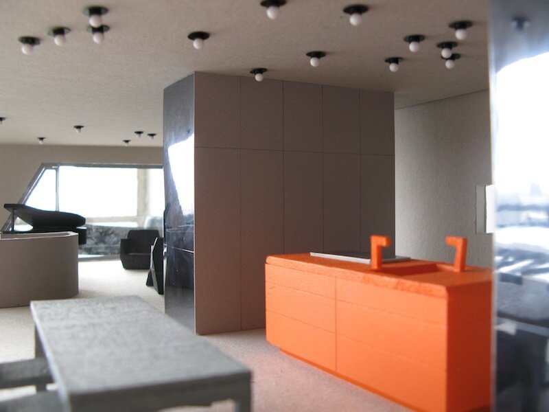 Situated in a precious piece of unspoiled polder, the house responds to the many qualities of the landscape. The seclusion and privacy of the remote location are reinforced by an enclosed garden, surrounding the sleeping quarters on the ground floor. The living space, with the kitchen as a central element, is located on the first floor, rising above the garden’s edges. Here the house connects with its surroundings, opening up to the passer-by, and profiting from the phenomenal view – with the Amsterdam skyline as a background. The interior organisation of the house, providing the parents and children with individual entrances and staircases, results in a nuanced collection of differently shared spaces.